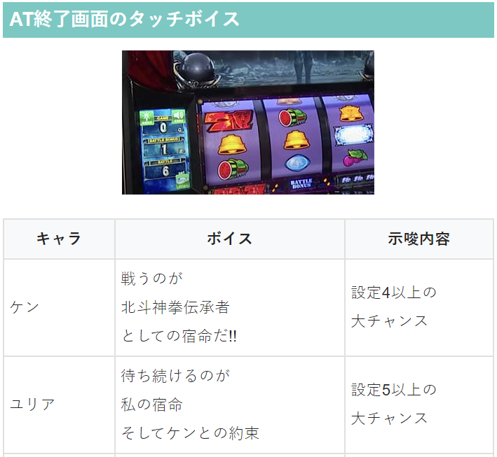 | 設定 | BB | 北斗揃い | 出玉率 |